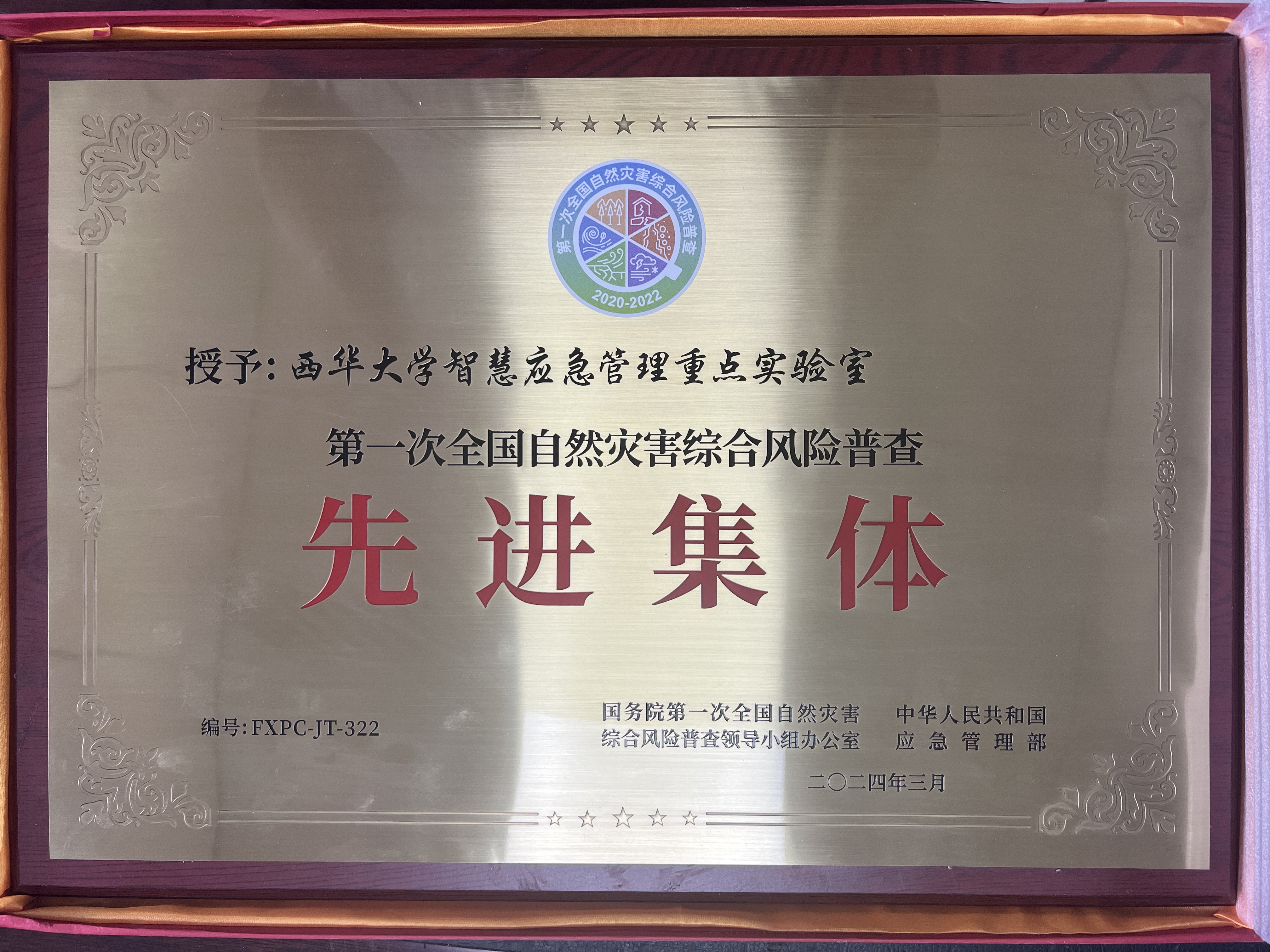 必赢3003no1线路检测中心智慧应急管理重点实验室荣获第一次全国自然灾害综合风险普查先进集体